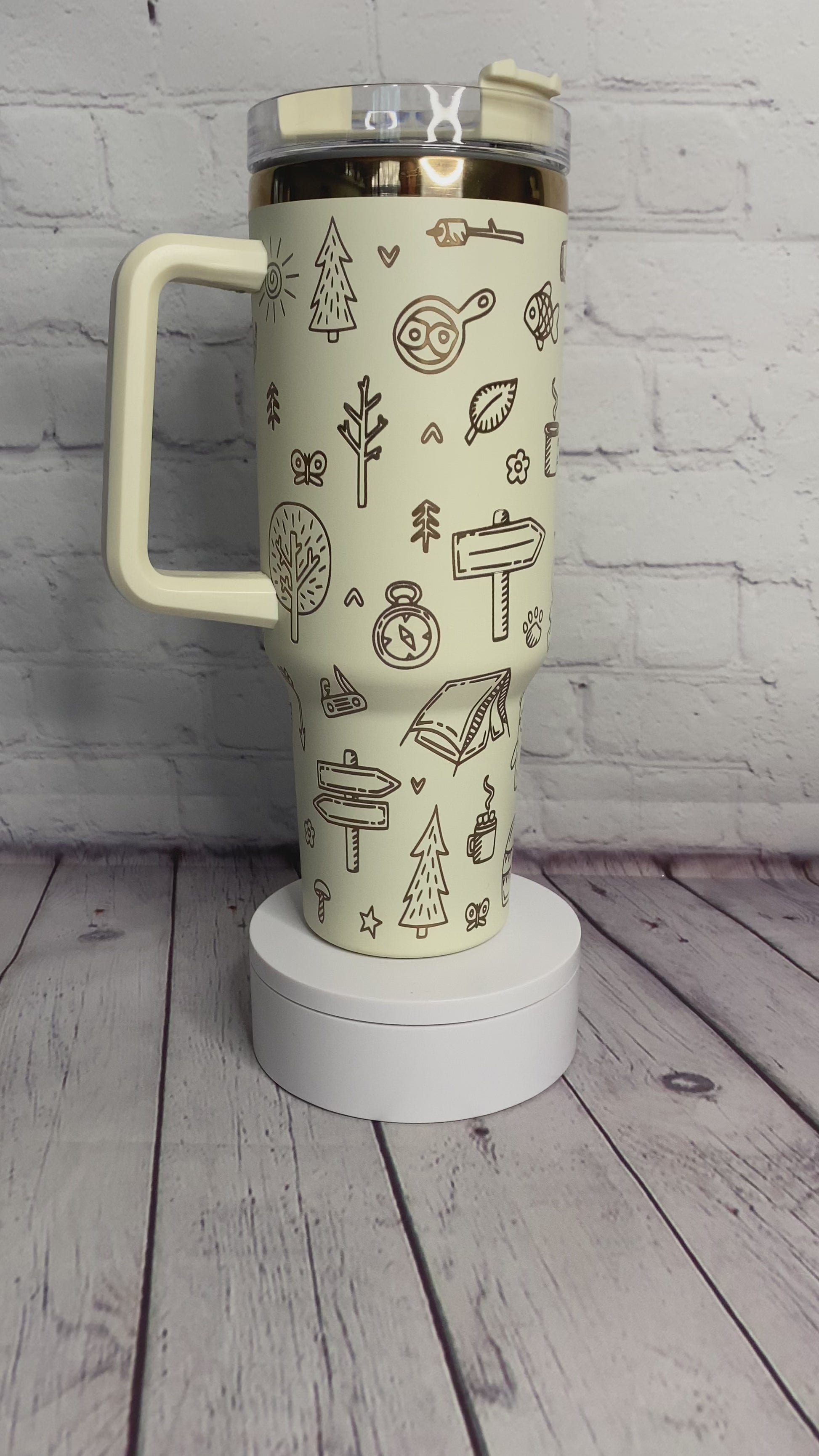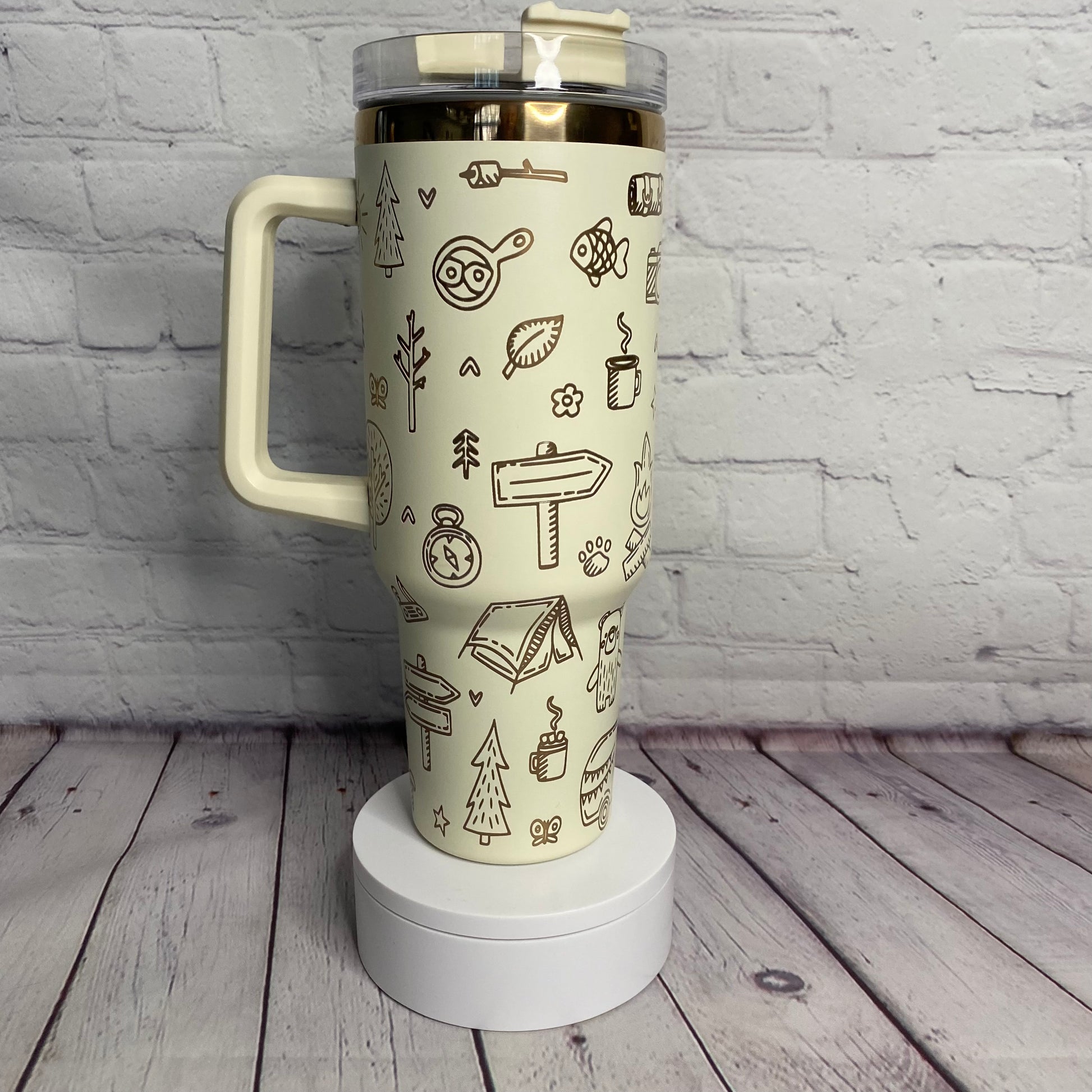 Take your camping experience to the next level with our laser engraved camping themed copper 40oz tumbler. This laser engraved tumbler would make a great gift for fellow campers or a treat for yourself. Lid and straw included.