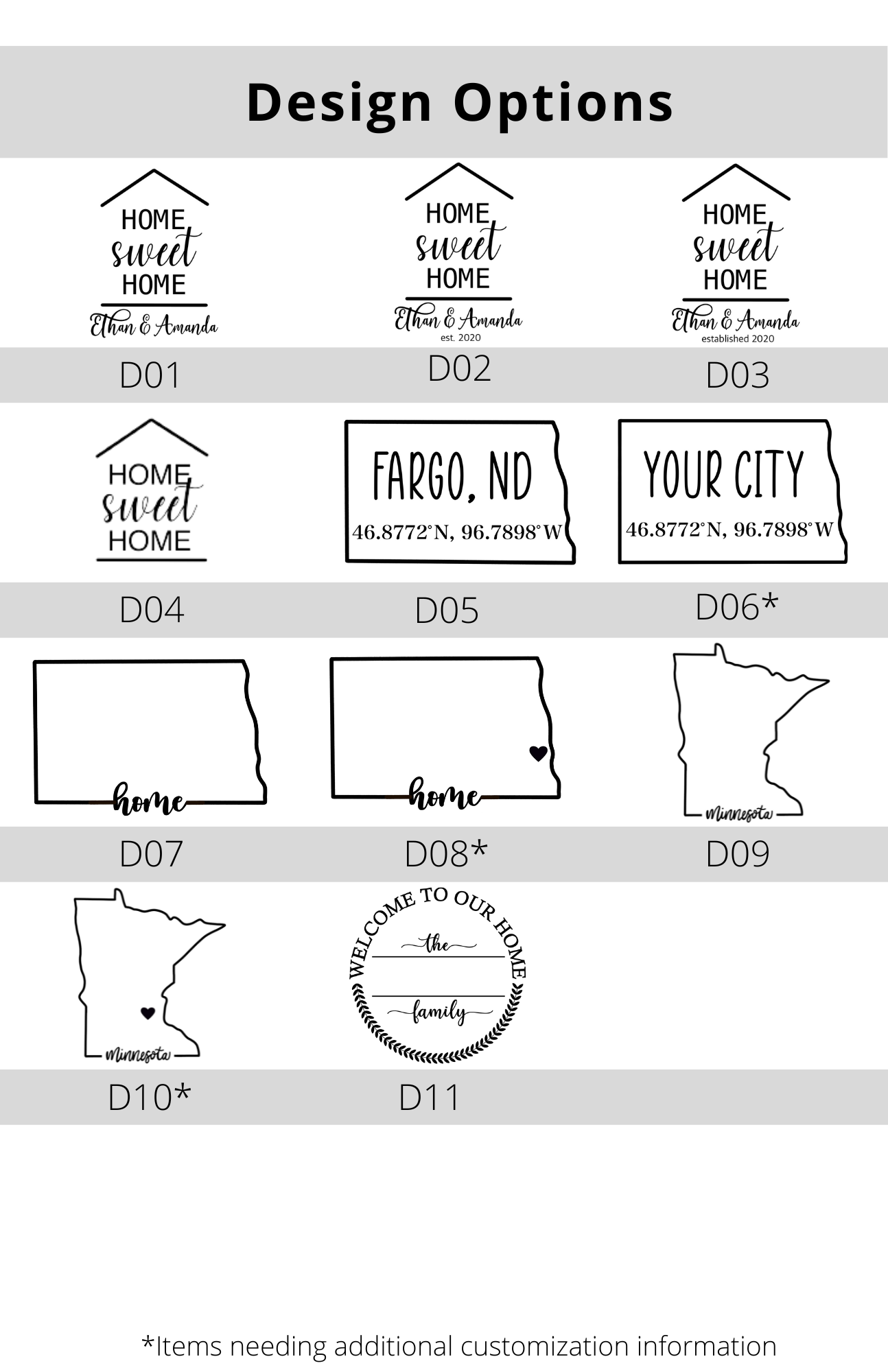 If you would like a custom design- like a different state, select the "Custom Design" Option!
