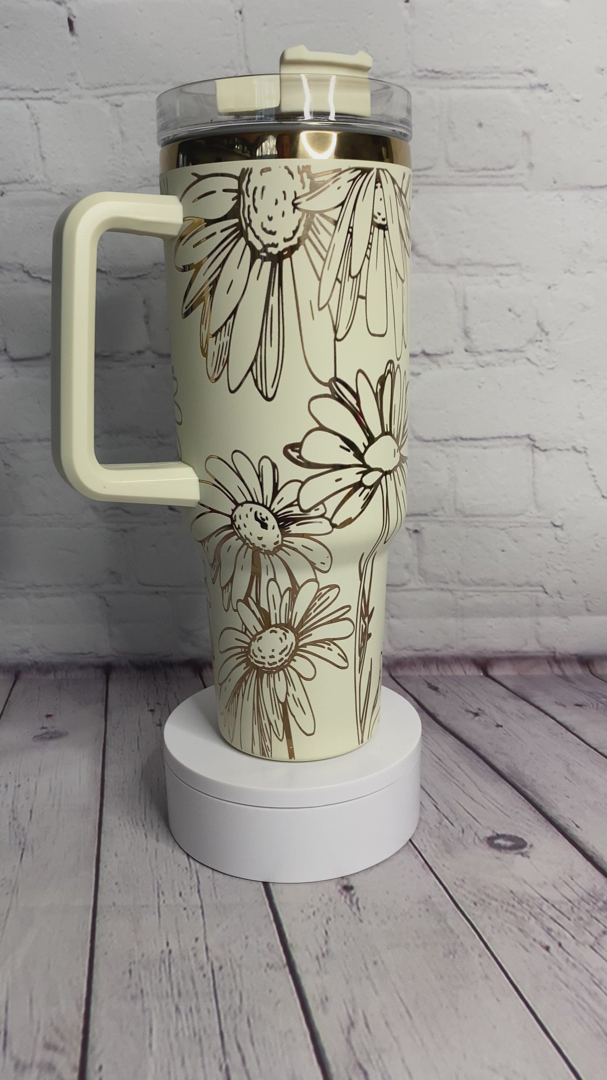 Indulge in the perfect blend of elegance and functionality with our exquisite 40oz Copper Tumbler featuring a stunning laser-engraved daisy design. Elevate your drinking experience and turn heads with this unique and stylish accessory. Lid and straw included.