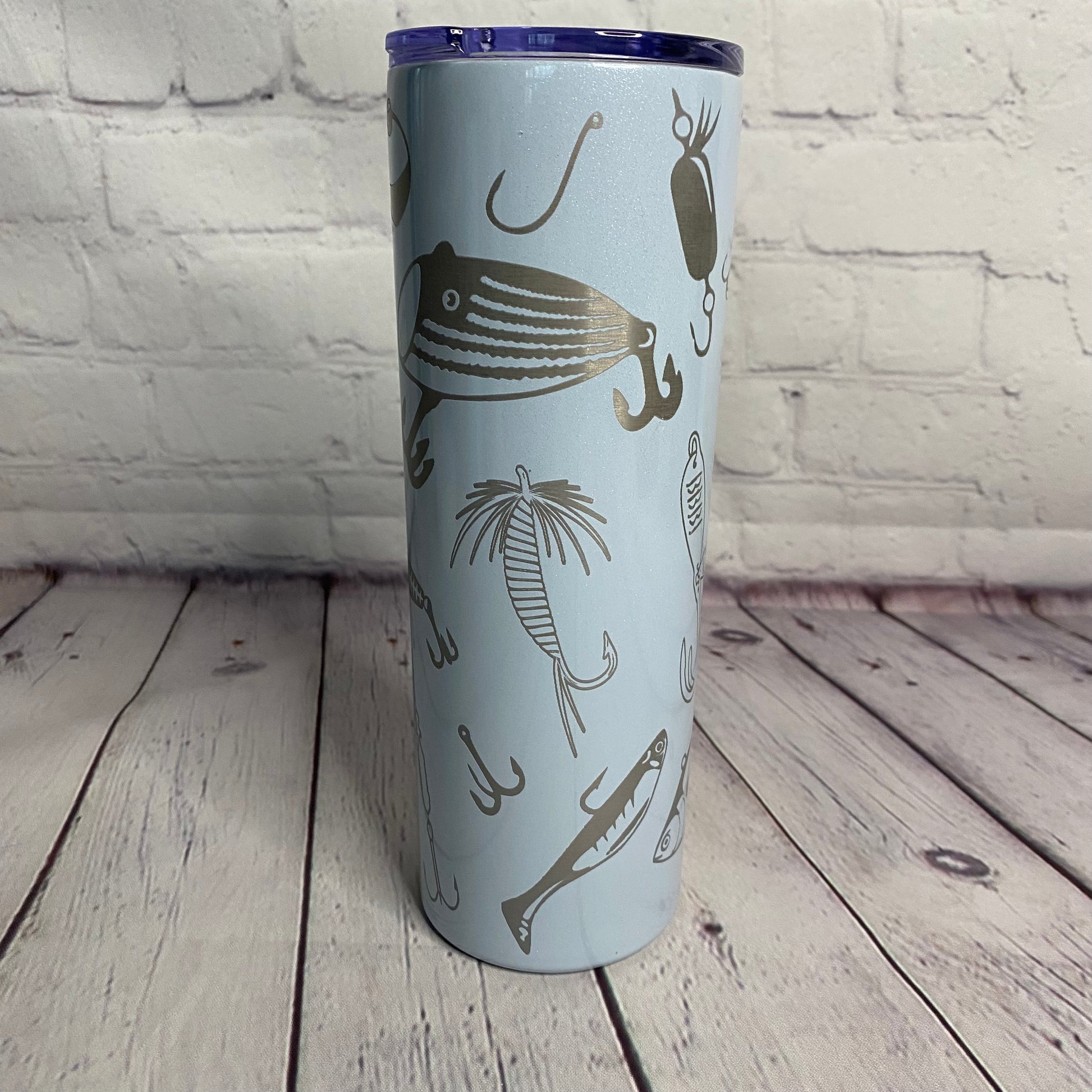 Make every sip an adventure – order our 20oz Blue Tumbler with Fishing Lure engraving now and reel in the excitement with each refreshing drink! Lid and straw included.