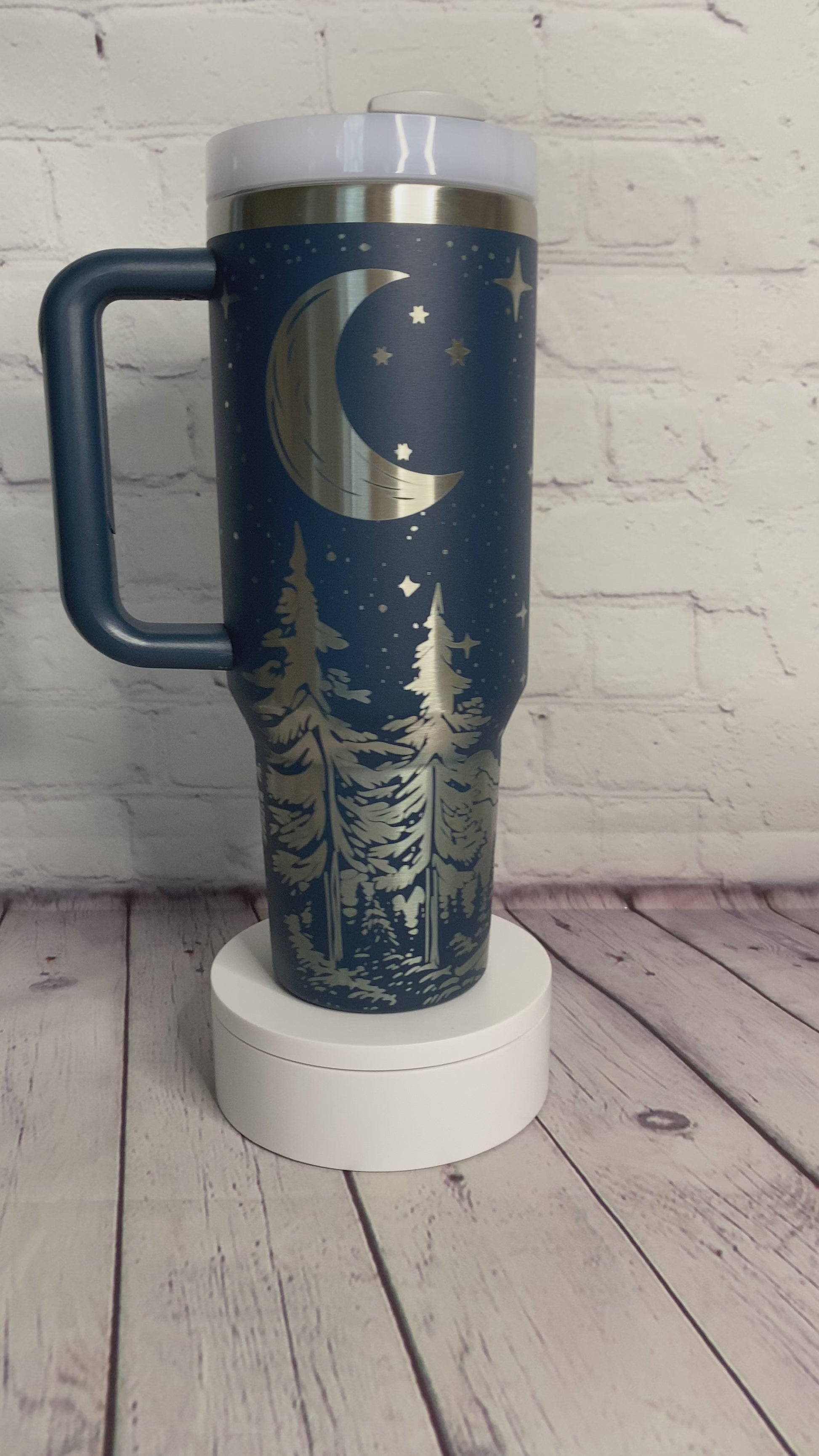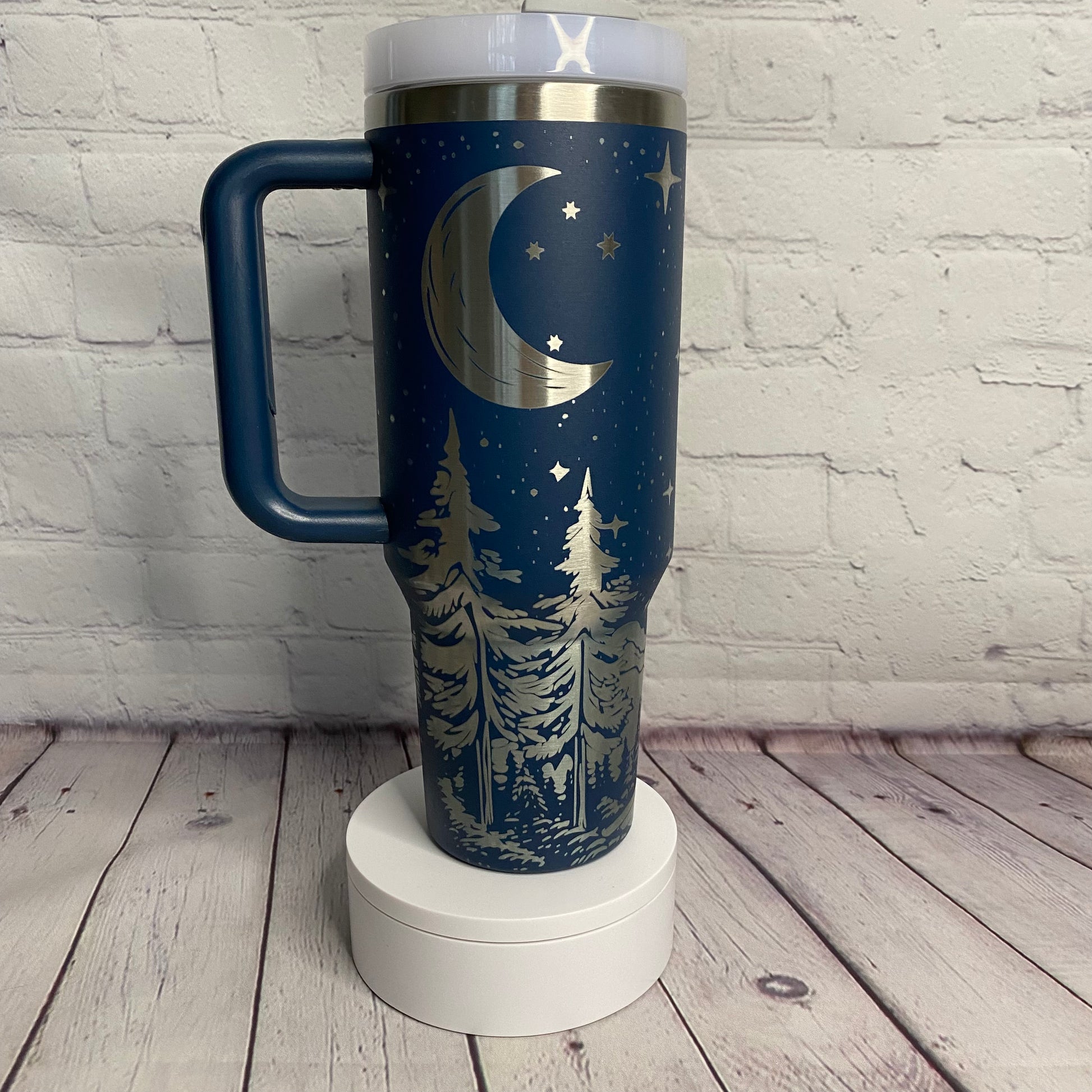 Introducing our 40oz Nightscape Tumbler with Handle in navy blue color– a perfect blend of style and functionality! Elevate your sipping experience with our laser-engraved designs that won't wash off. Grab yours now and make every sip an expression of your personality! Lid and straw included.