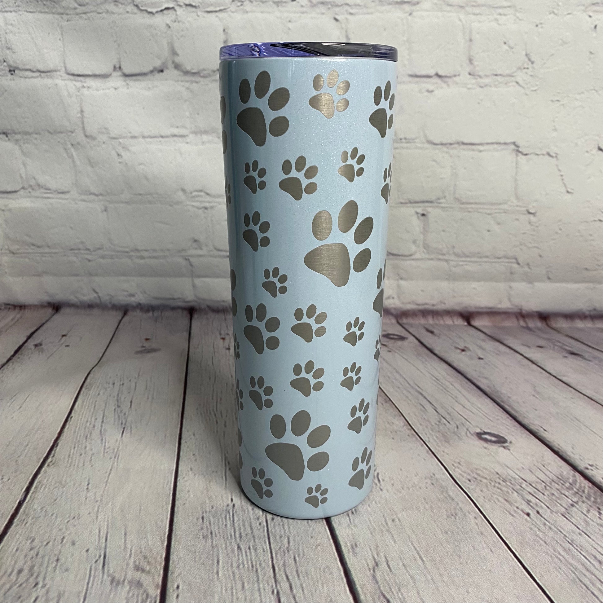 Perfect for pet owners and animal enthusiasts, our paw print-engraved tumbler brings a playful and positive vibe to any setting. Whether at home, work, or on the go, let your tumbler express your love for furry friends. Enjoy our blue 20oz tumbler, lid and cover are included.